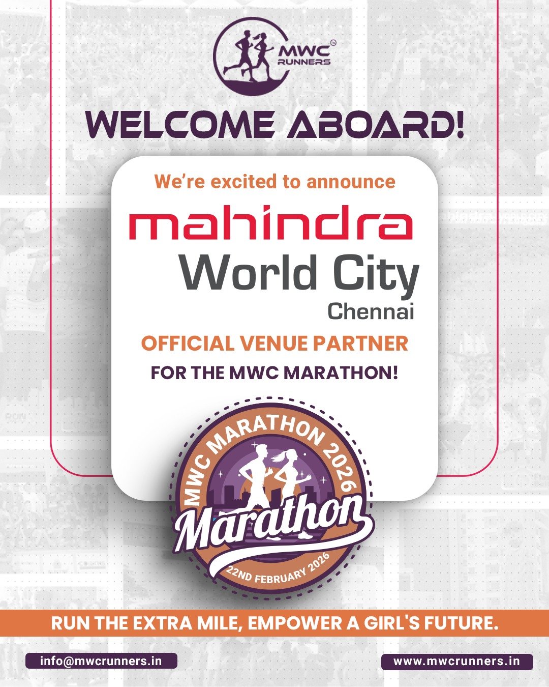 MWC Marathon 2026 will be organised by MWC Runners Club in collaboration with the Mahindra World City, Chennai and MG WEB (Official Digital Partner to MWC Runners).